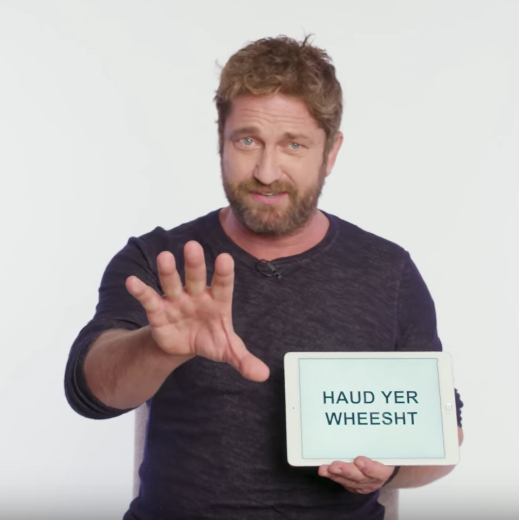 It’s Gerard Butler. And he’s speaking in Scottish slang. We like this a lot. Can you talk the talk?